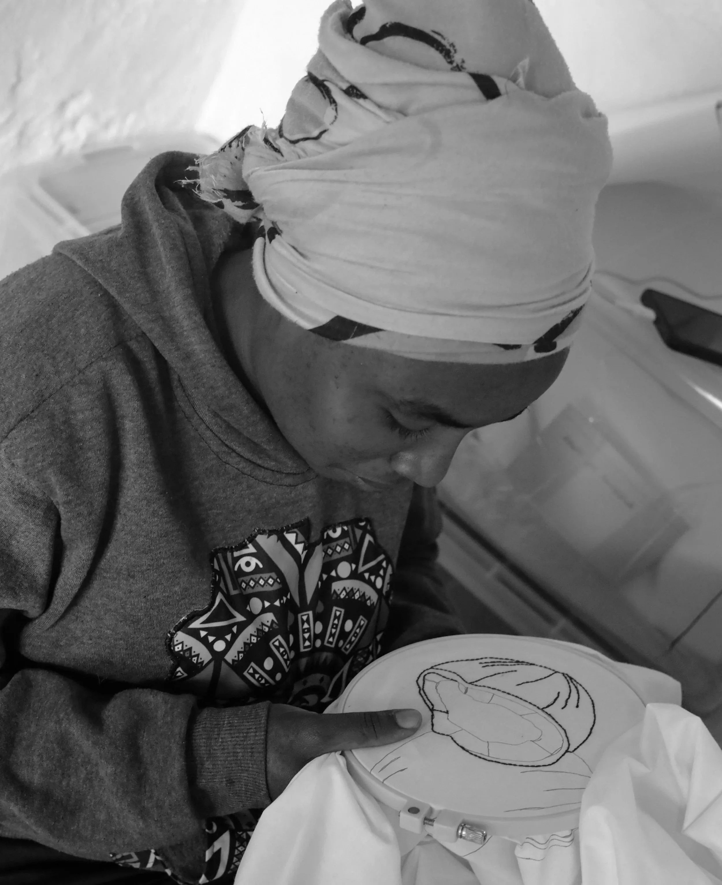 Initially, Chloe visited the Skylit Centre once a week for two months, training nine women in hand embroidery using a range of techniques and stitches. As their skills developed, the women were commissioned to collaborate with her on handmade products. Today, groups continue to train weekly, refining their embroidery through work on fabric packaging and product design. All members of the Collective are paid fairly and are now earning a sustainable income.
